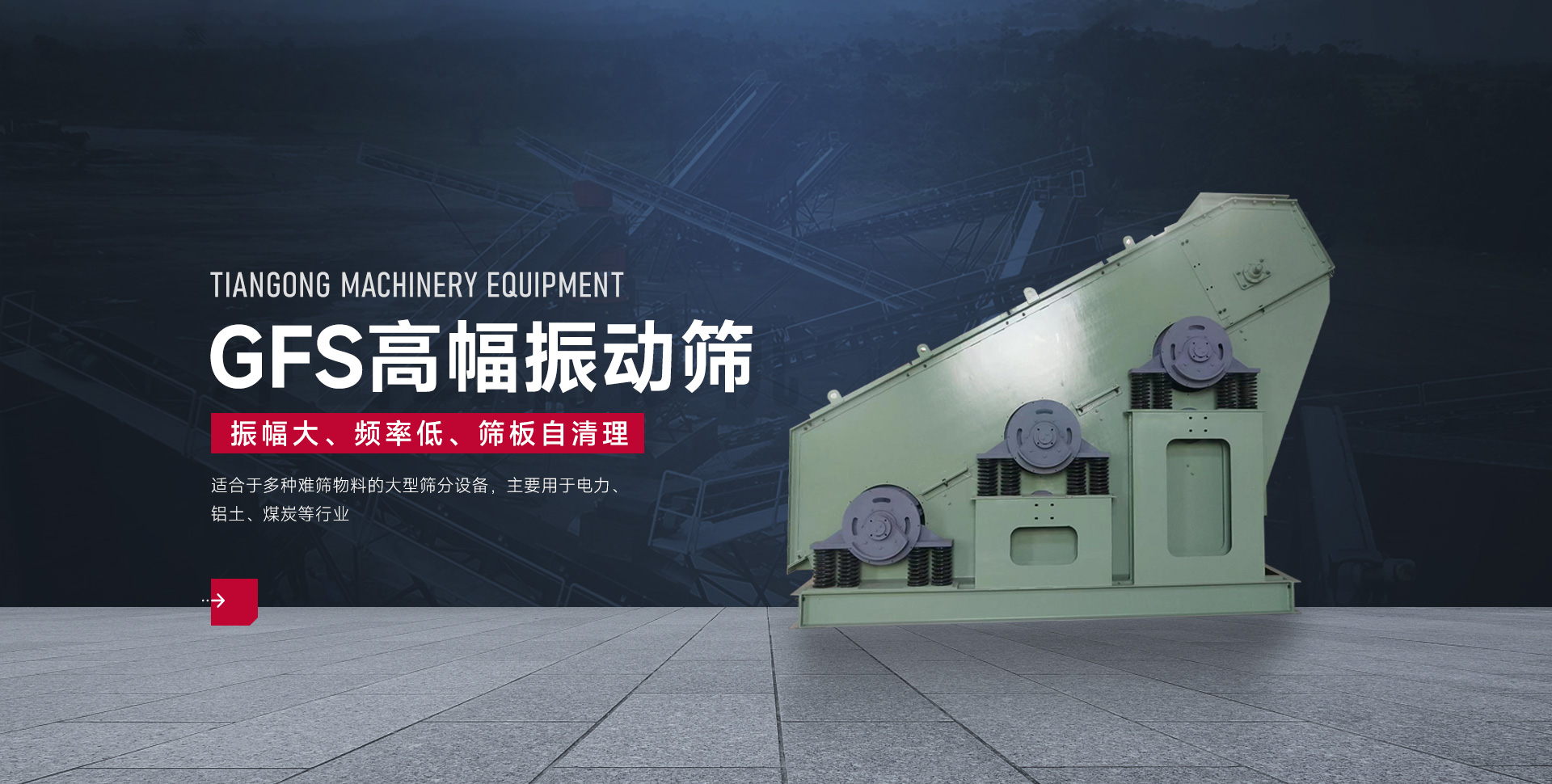 新鄉市天工機械設備有限公司生產各種用于電力、煤炭、氧化招、礦山、冶金等行業的機械設備,主要產品有高幅篩、香蕉篩、雙軸圓振篩、給料機、活化給煤機、輸送設備、激振器、振動電機、各種離分子篩板、襯板、減振彈簧、皮帶機托輥等系列。  公司致力于電力、煤炭、氧化鋁、礦山、冶金機械制造事業,專注于為客戶提供正確的解決方案,根據客戶的需求導向,幫助其解決問題,為其創造價值。在客戶的信任和支持下,也使得企業取得了持續發展。天工人將通過為客戶創造更多的價值、提供完善的服務,與客戶共謀發展。